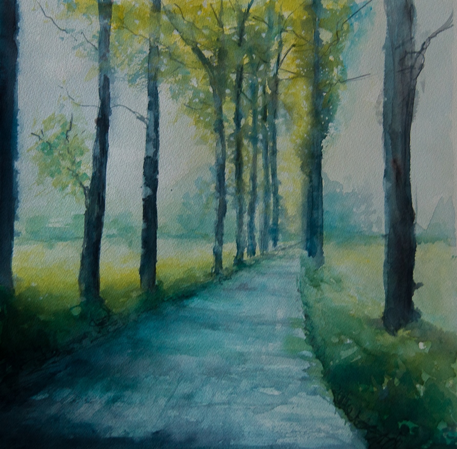 While I was in England for four months over the spring and early summer, I took lots of photos to use a references for work once I came home. I loved the dappled light created by the sun through the leaves of trees and the cast shadows. I have always struggled a little with trees and with green, so these paintings have really challenged me to step out of my comfort zone. Mixing blues with yellows and tube greens I created a colour sheet that gave me a real insight into the shades you can create. Green is no longer my enemy! Trees? Maybe I am getting to grips with those too!
